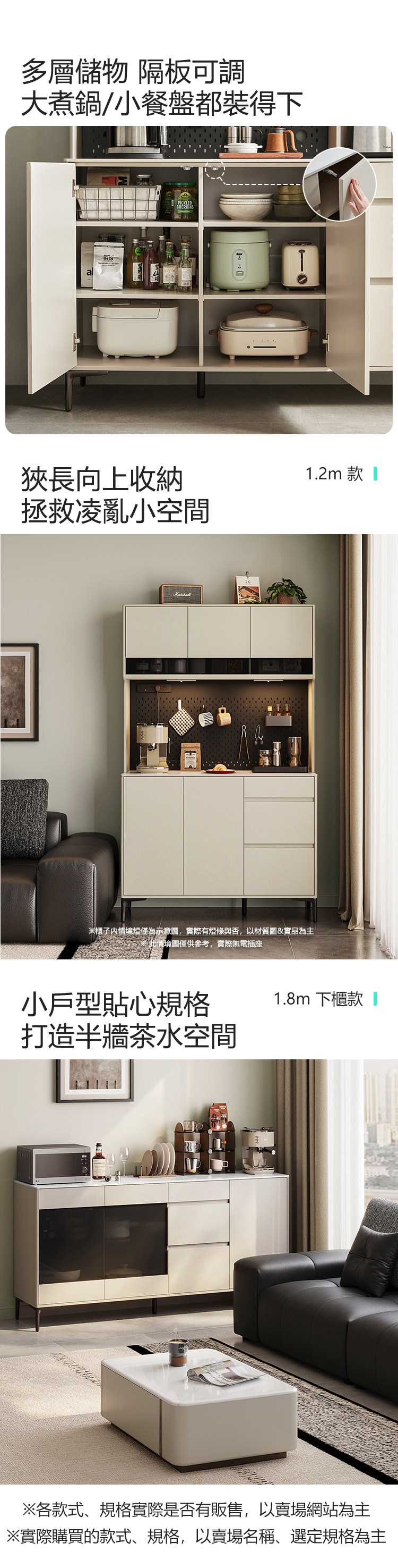 奶油風輕奢餐邊櫃現代簡約家用廚房靠墻櫃子儲物櫃客廳酒櫃