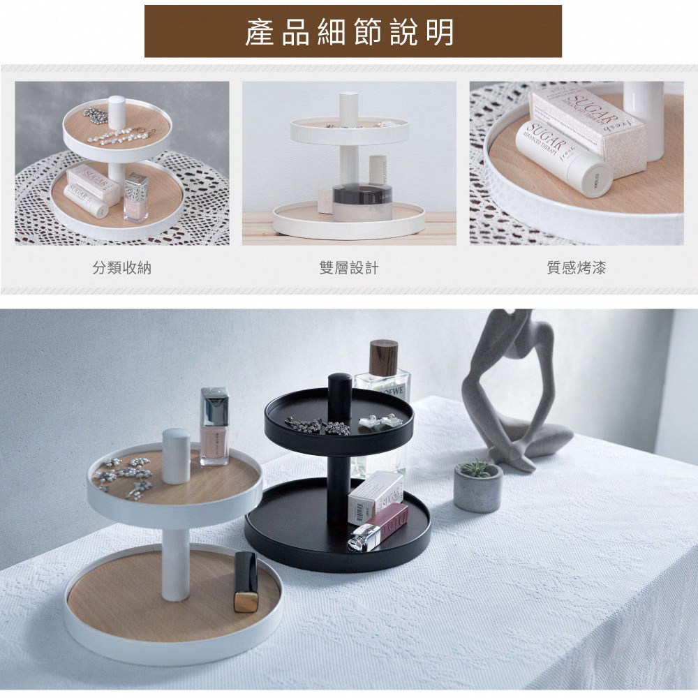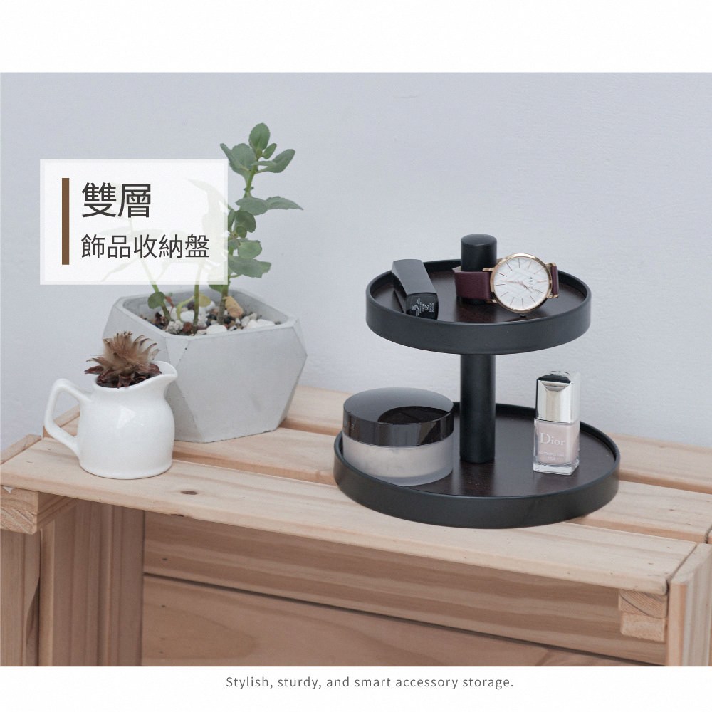 【H&R安室家】雙層木紋飾品小物收納盤 收納架 BM03黑色