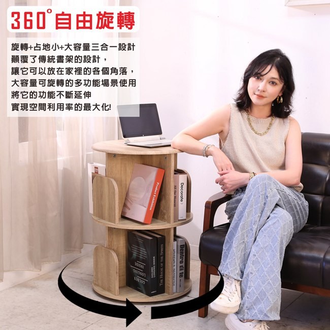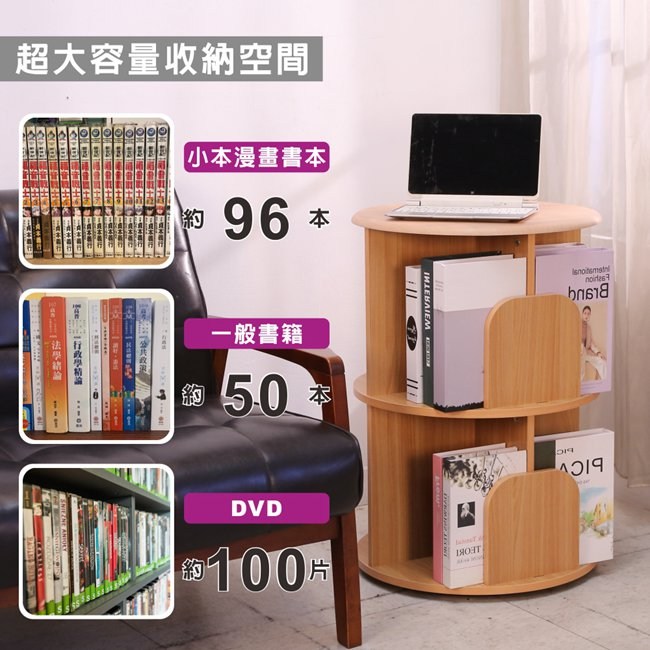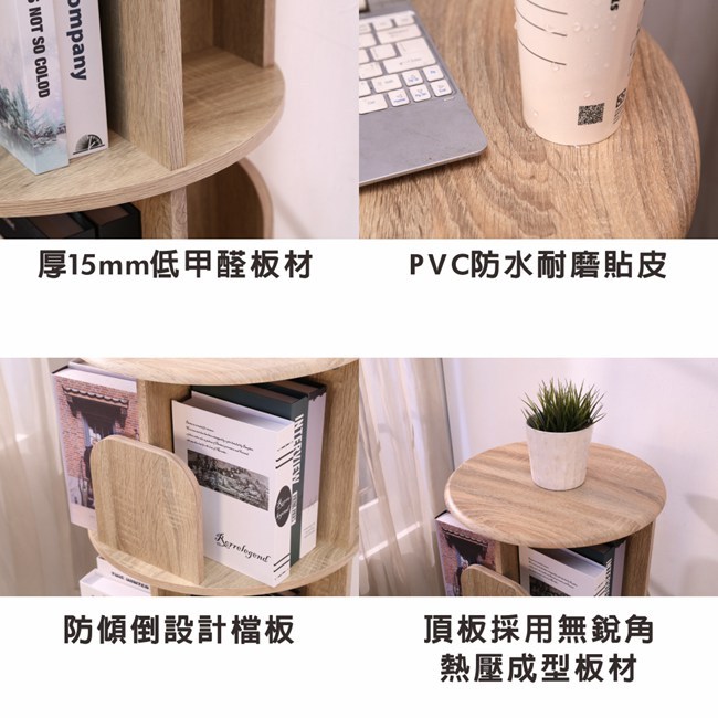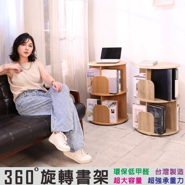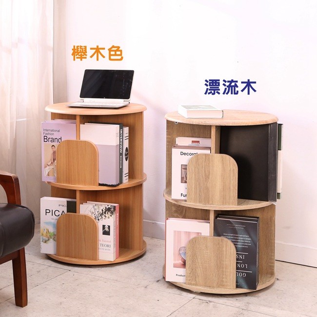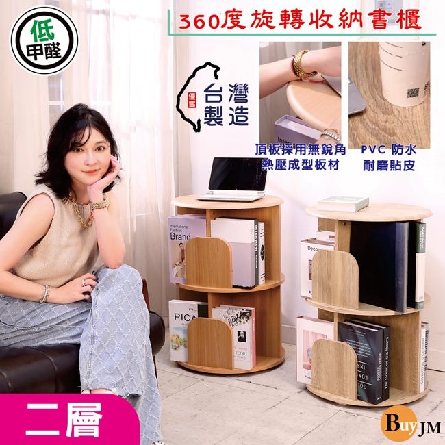 BuyJM MIT低甲醛圓型二層旋轉書櫃/書架/展示架/雜誌架直徑48x高70公分櫸木色