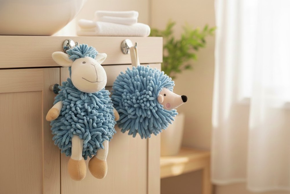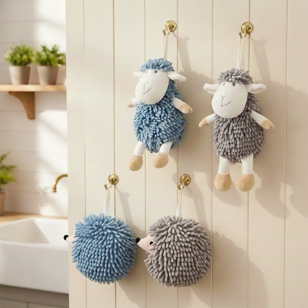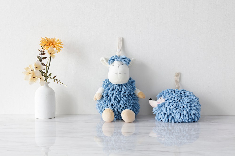 雪尼爾擦手巾兩入組 綿羊刺蝟藍