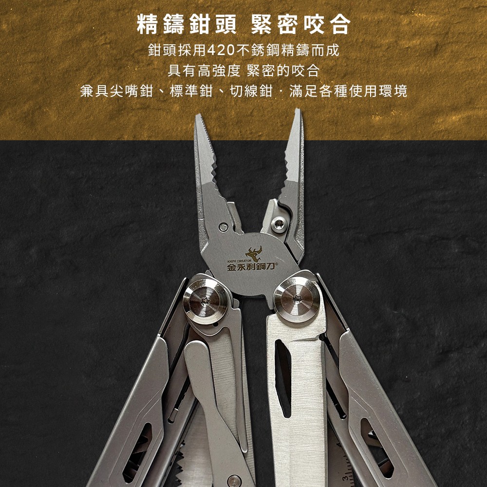 【金永利鋼刀】420不鏽鋼 16合一 多功能老虎鉗 摺疊瑞士刀 露營隨身工具組