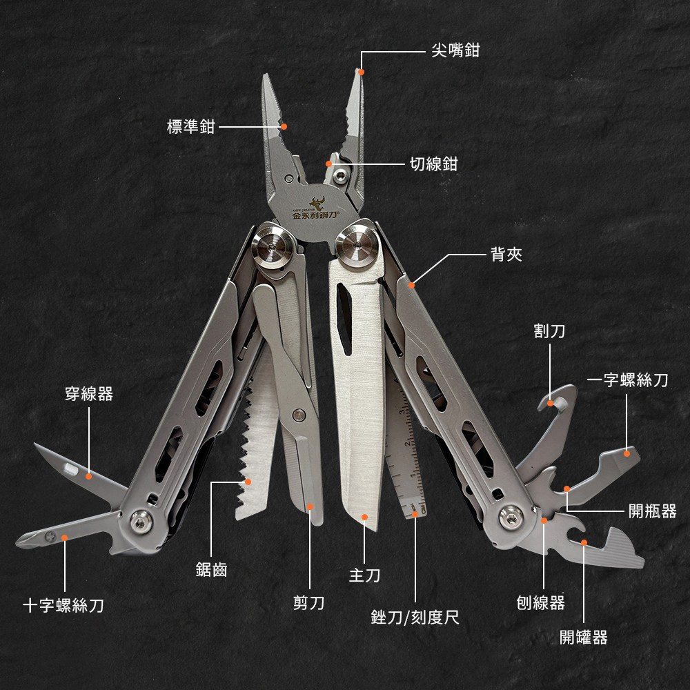 【金永利鋼刀】420不鏽鋼 13合一 多功能老虎鉗 摺疊瑞士刀 露營隨身工具組