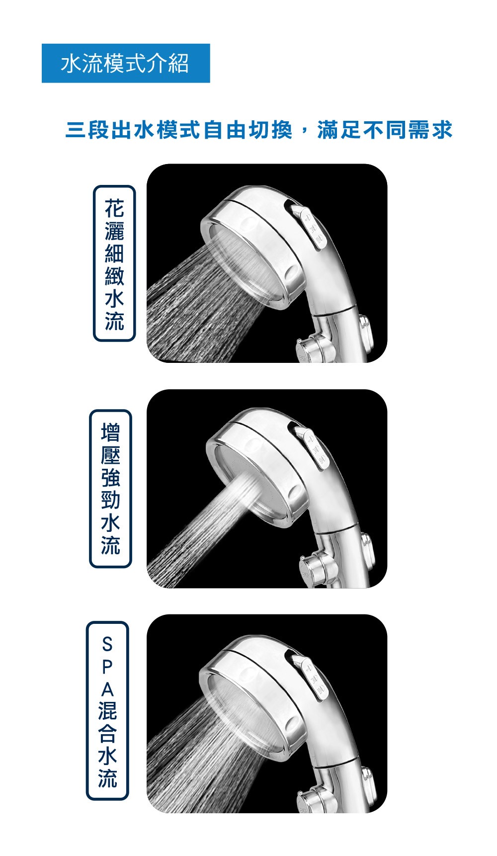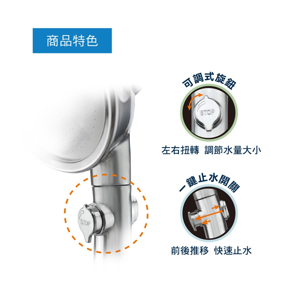 LOMOS 一鍵止水三段增壓蓮蓬頭 可調式 DC08