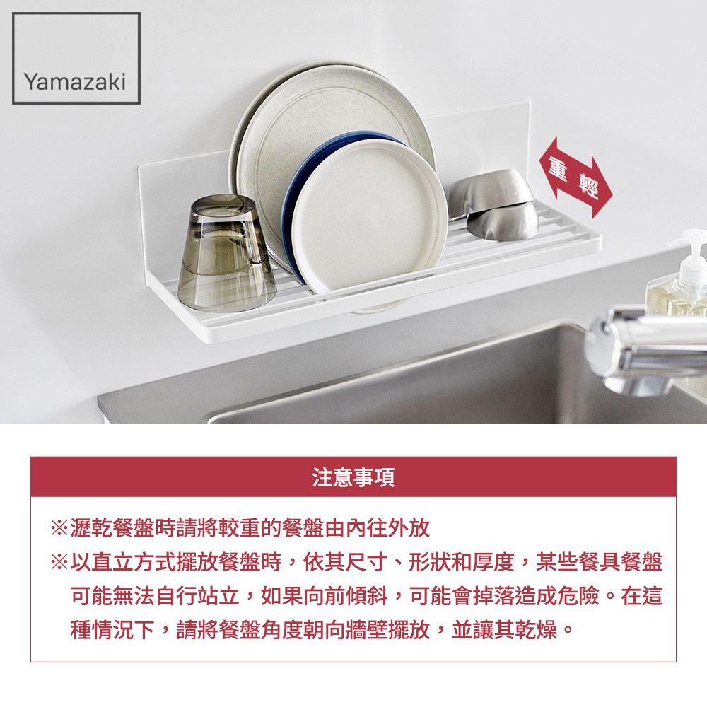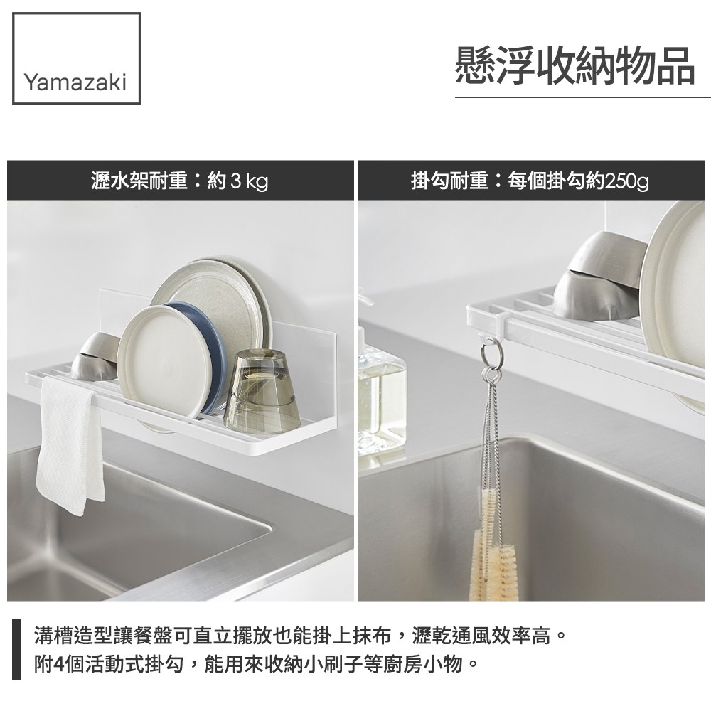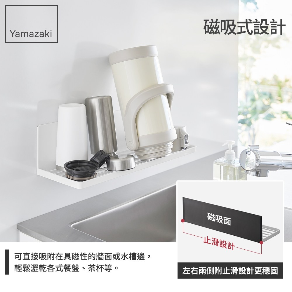 磁吸面左右兩側附止滑設計更穩固。溝槽造型讓餐盤可直立擺放也能掛上抹布,瀝乾通風效率高。