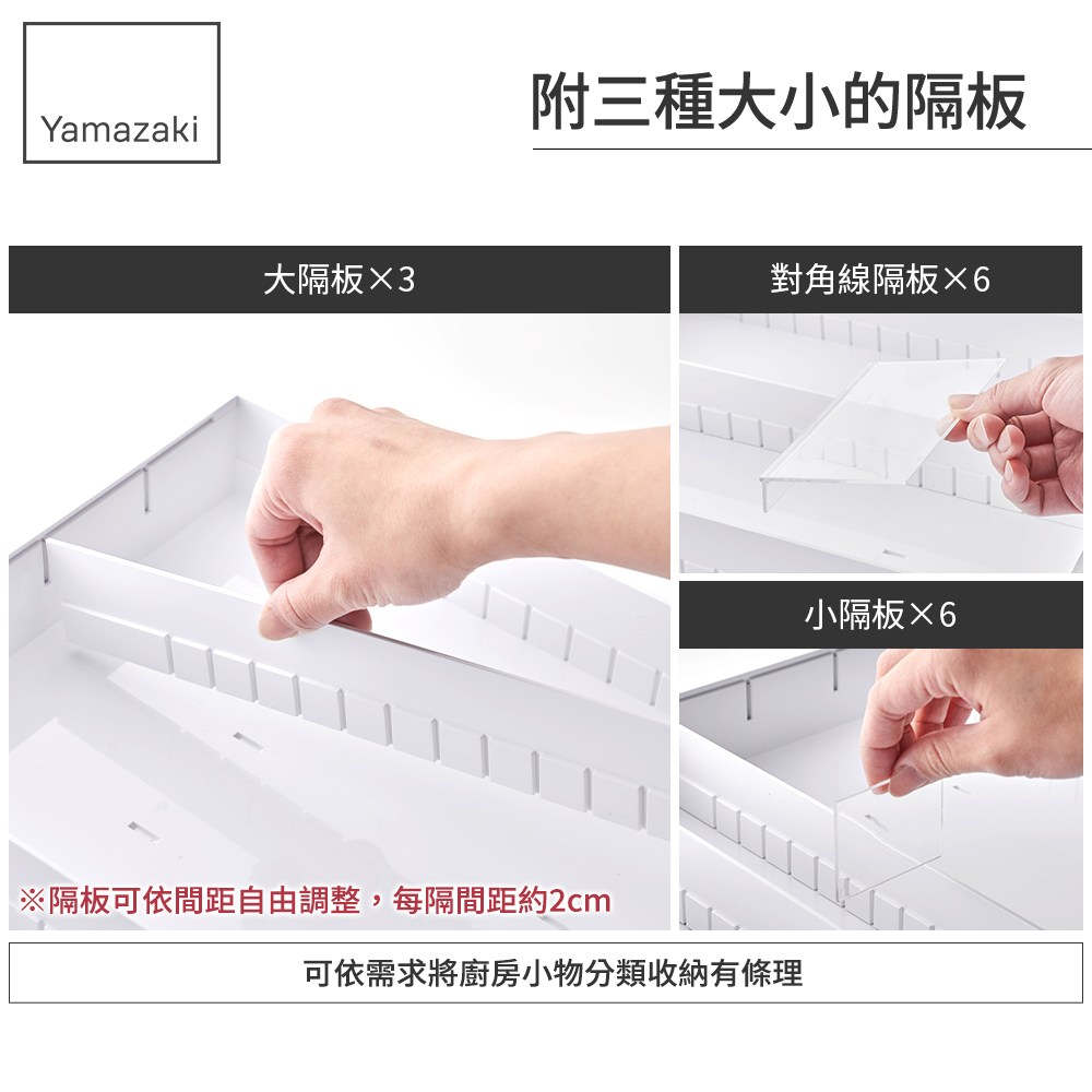 附三種大小的隔板,可依需求將廚房小物分類收納有條理,