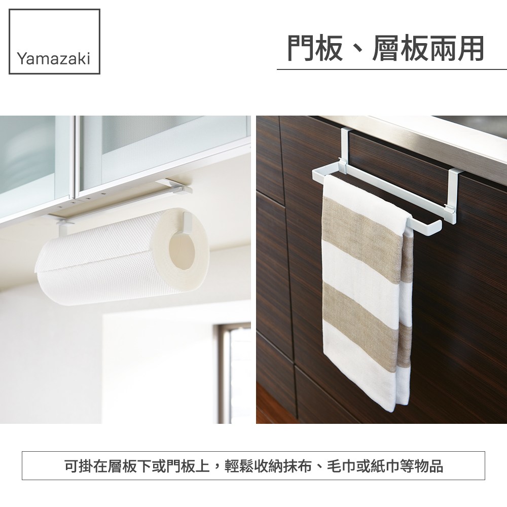 兩用ㄇ字型設計,可掛在層板下或門板上,輕鬆收納抹布、毛巾或紙巾等物品。