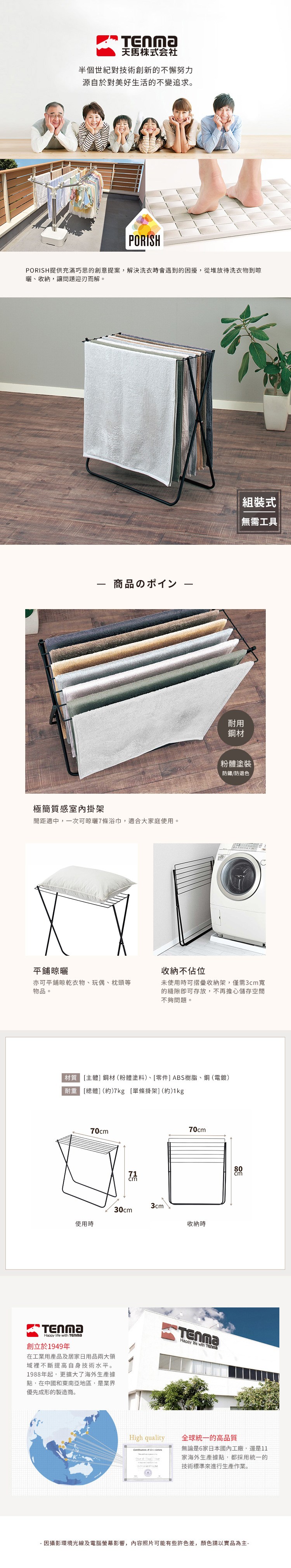 【日本天馬】PORISH 室內用摺疊浴巾毛巾晾曬架-DIY