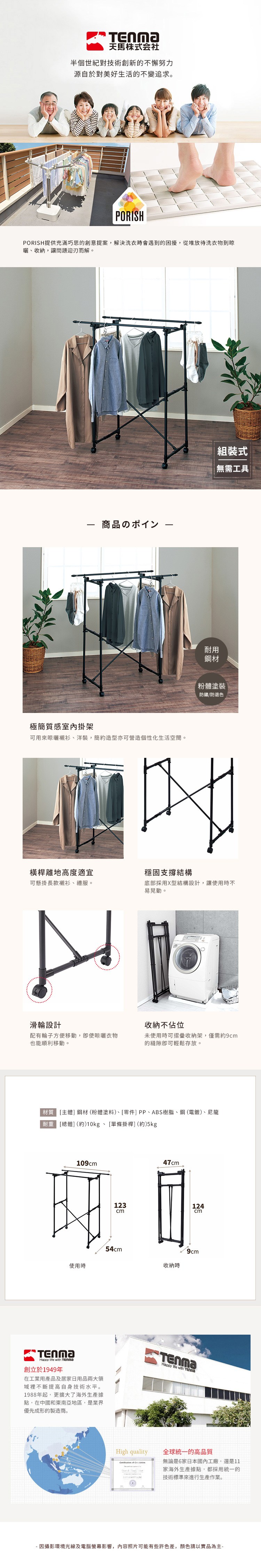 雙層可升降吊衣架 RH2434-WT 白色 95~155 x 47 x 182.5cm 附帶滾輪