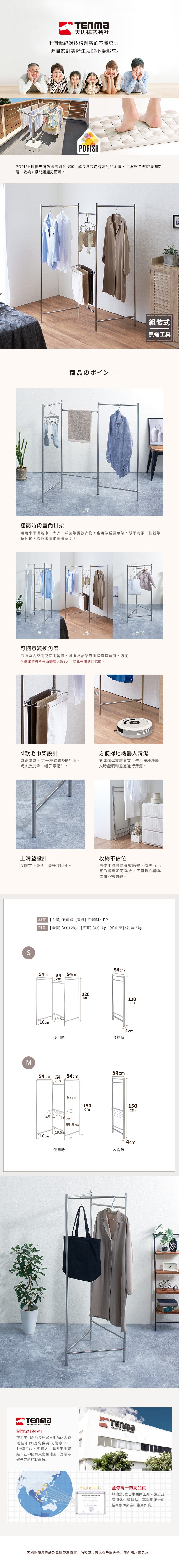 【日本天馬】PORISH 室內用極簡輕量多功能折疊掛衣架-M-DIY