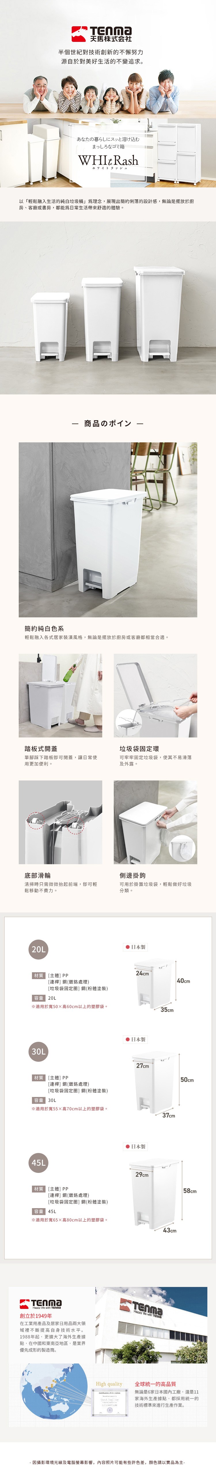 【日本天馬】日本製 WHItRash 腳踏式垃圾桶(附輪)-30L