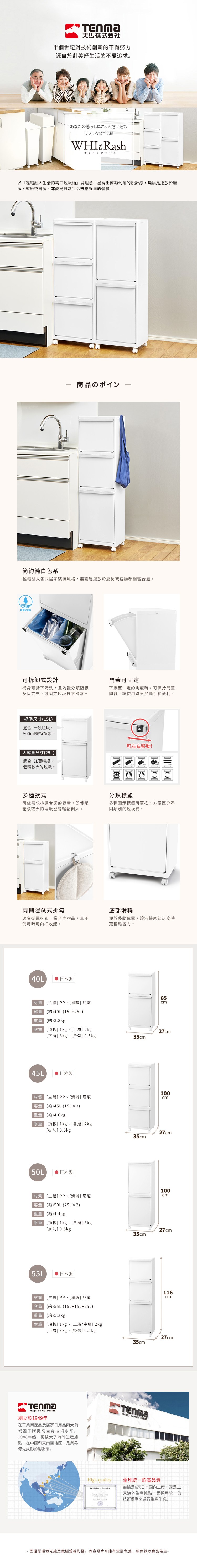 【日本天馬】日本製 WHItRash 三層抽屜式分類垃圾桶(附輪)-45L