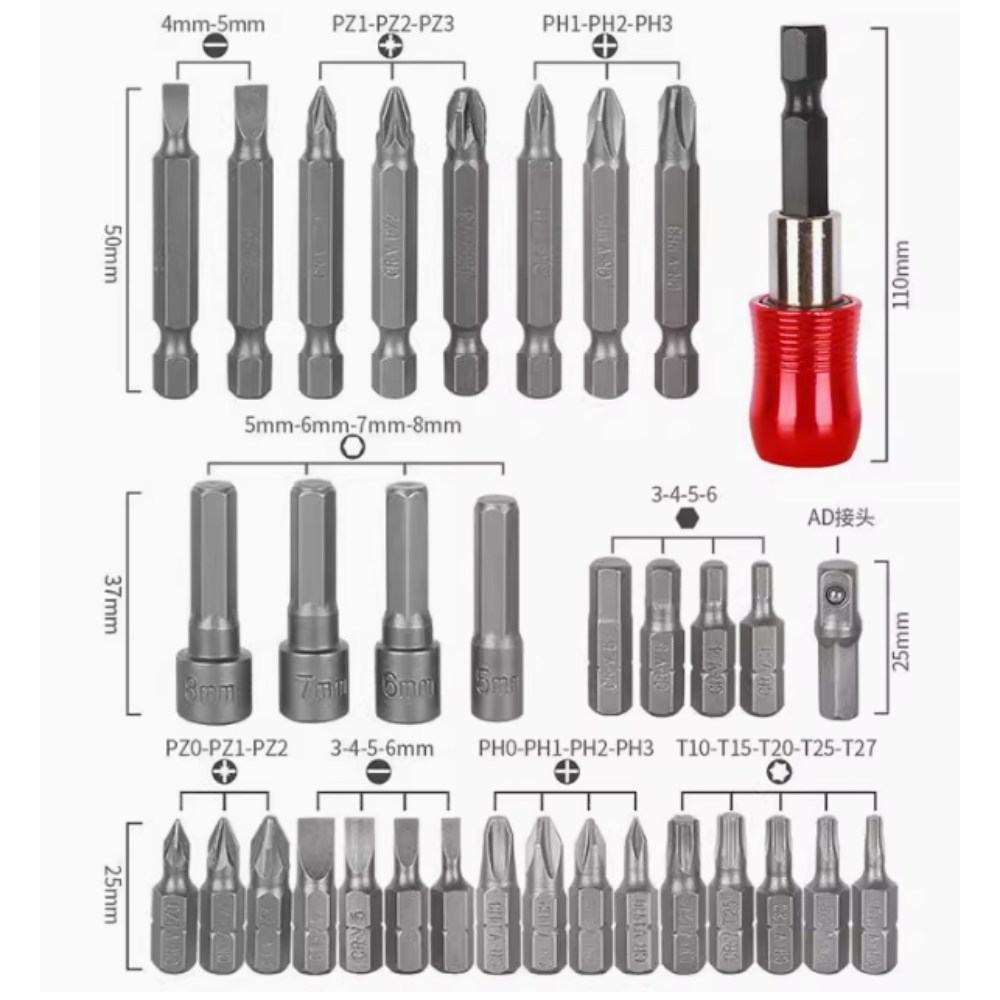 【HILDA】希爾達 34件套十字一字起子頭組合套裝六角螺絲套筒家用維修工具