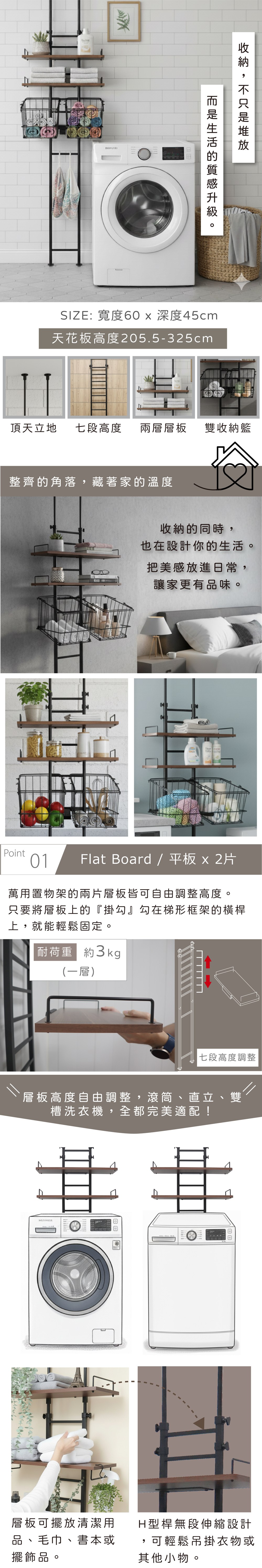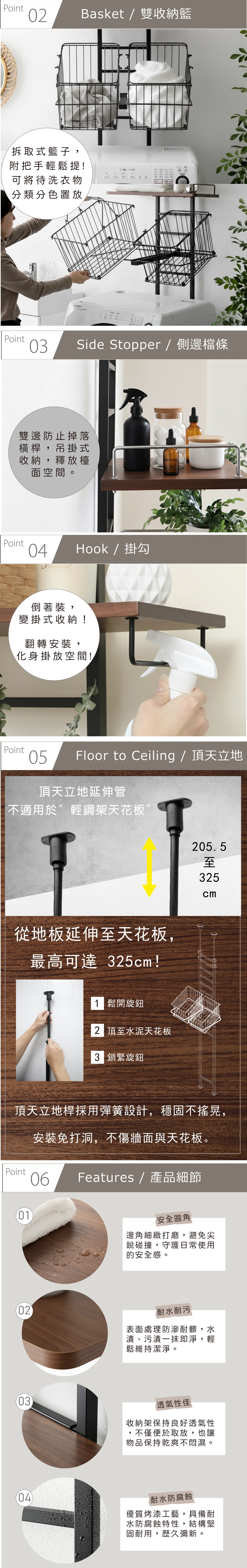 頂天立地兩層兩籃萬用置物架 黑色+胡桃木色