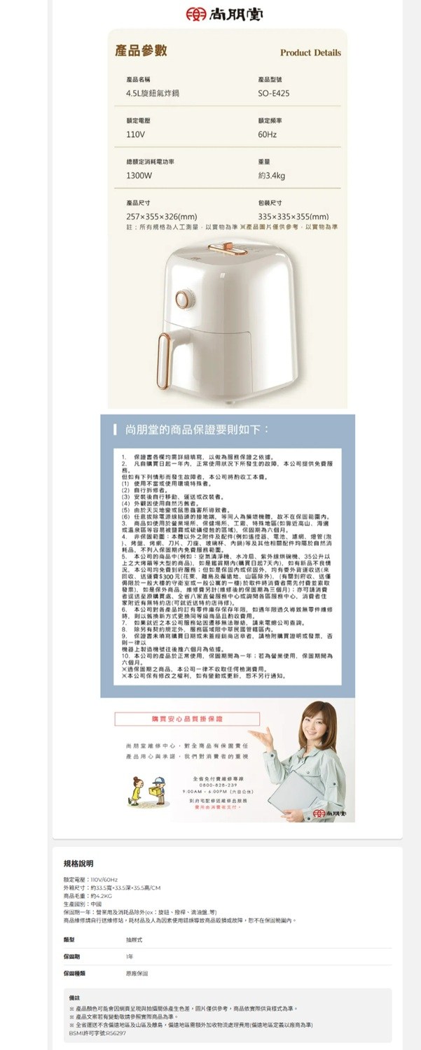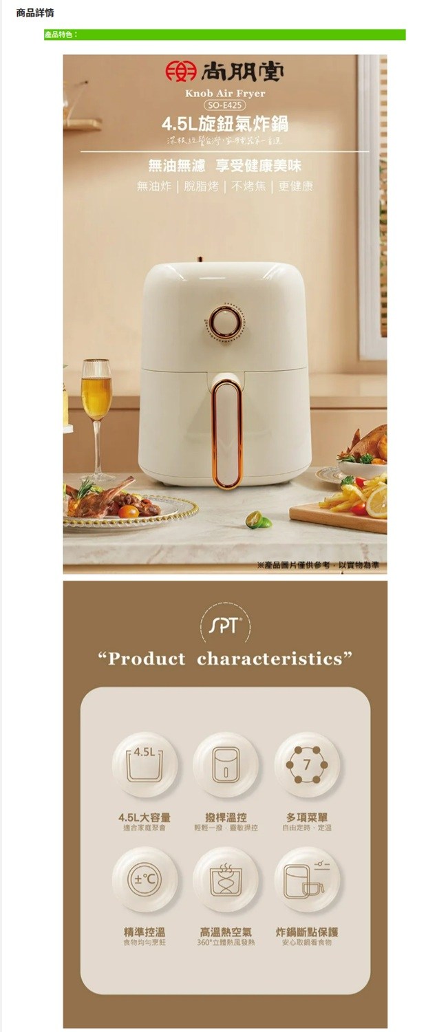 尚朋堂 4.5L旋鈕氣炸鍋 SO-E425
