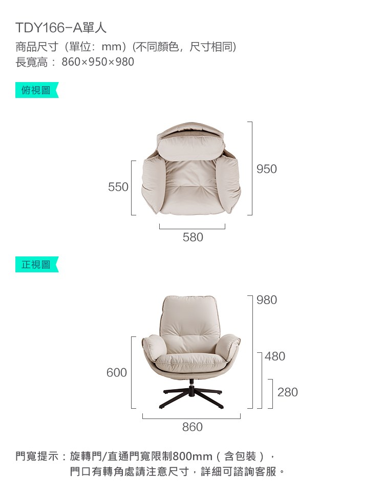 *注意:以下為情境示意圖,實際商品款式為簡約抱抱休閒椅 TDY166-柔沙色
