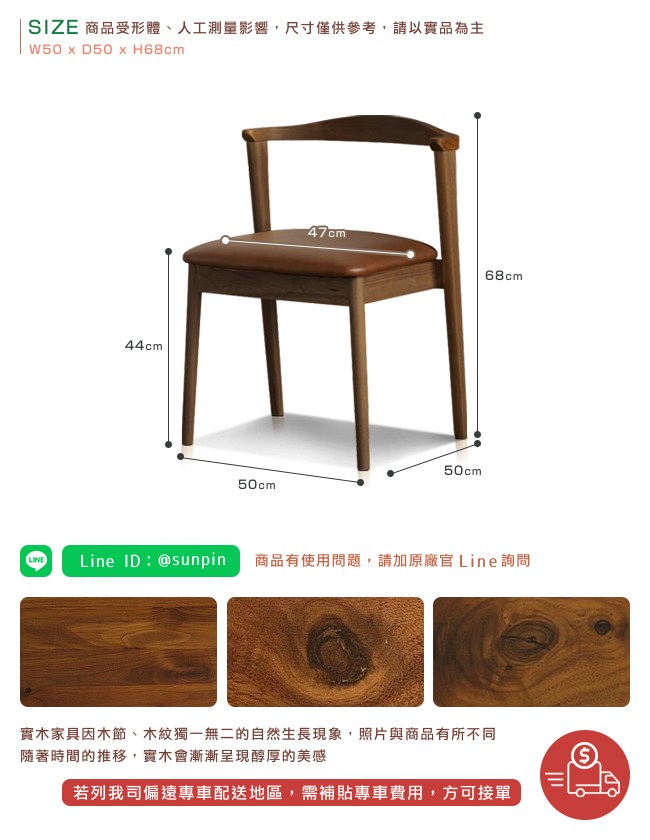 ・實木家具因木節、木紋獨一無二的自然生長現象,照片與商品有所不同。