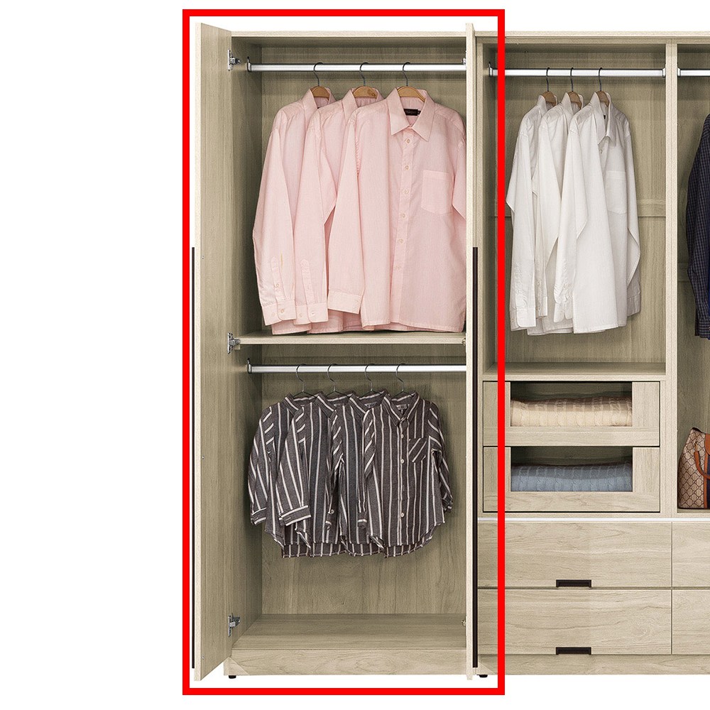 直人木業-ELLIE 生活美學緩衝滑門衣櫃寬199公分加60公分置物櫃A款【單長吊/雙吊49公分/中二抽】