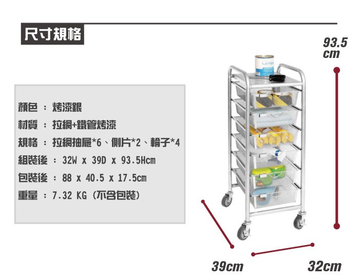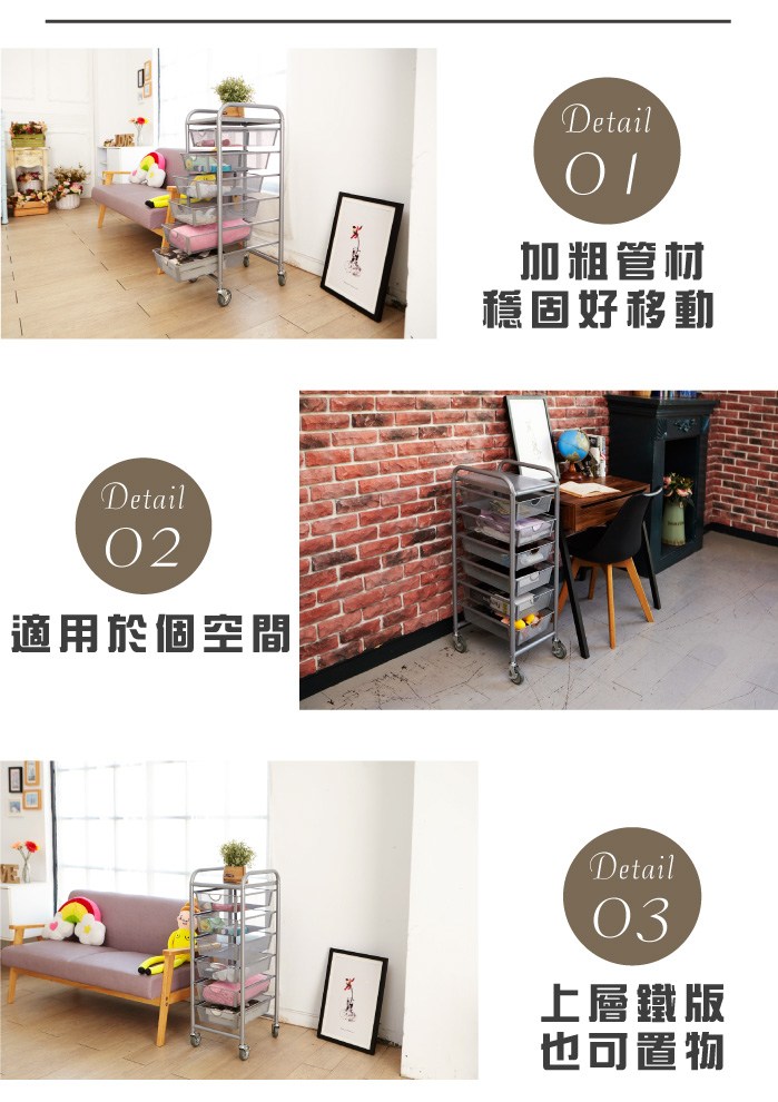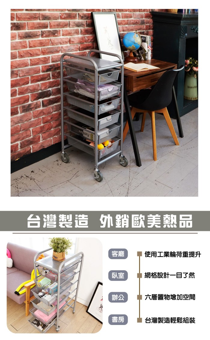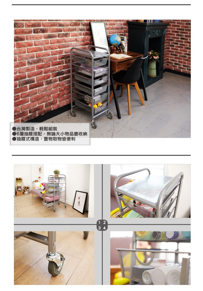 【H&R安室家】六層網格抽屜推車 G206U