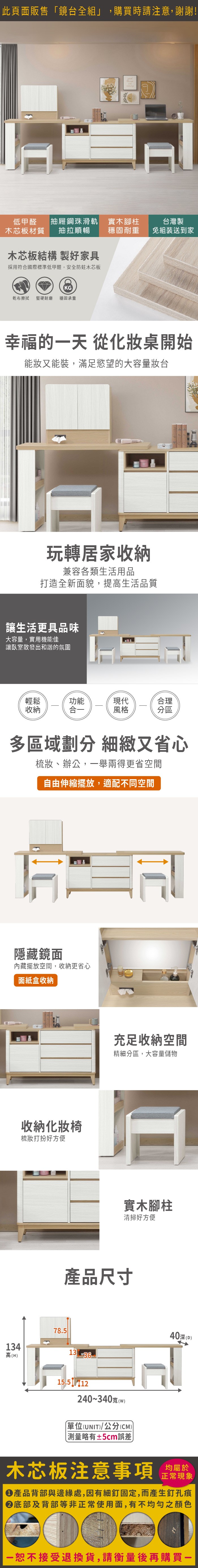時尚屋 [DV10]莫特白橡3.2尺鏡台含椅DV10-629-免運費/免組裝/鏡台
