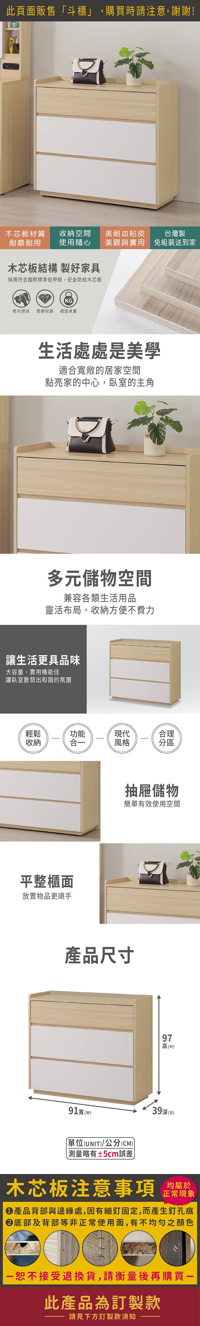 HappyLife 奶油方塊實木三斗櫃 Y12319