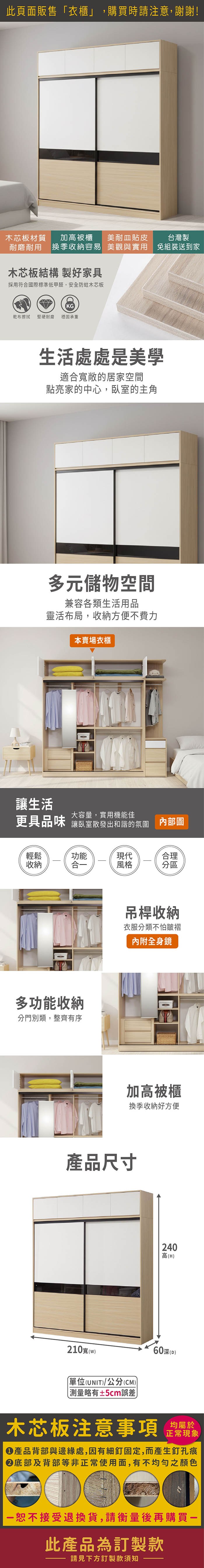 IDEA MIT凡賽4X6尺木質收納抽屜滑門衣櫃/衣櫥(3色任選)