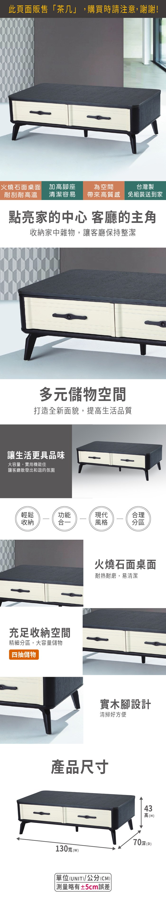 obis 維特4尺四抽岩板大茶几