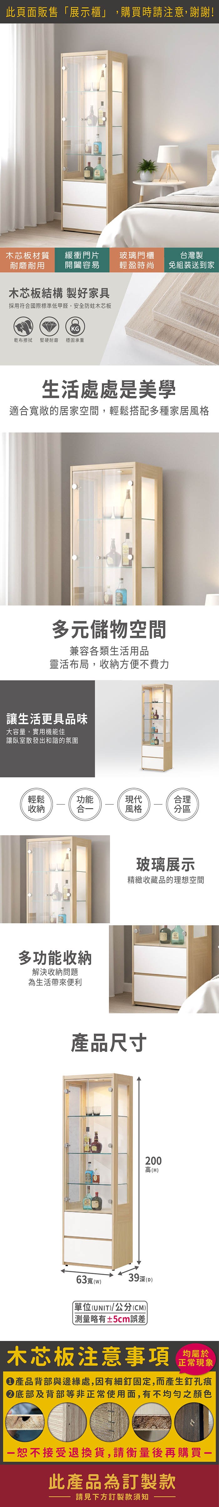 時尚屋 肯詩特烤白雙色2.1尺展示櫃 寬64x深40x高172.7cm