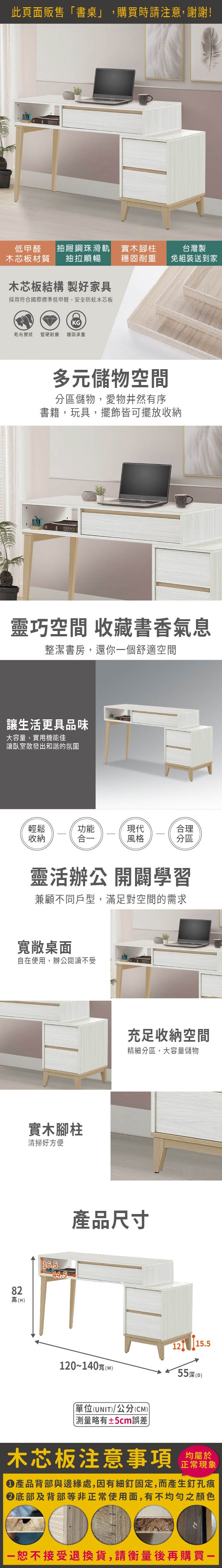 ASSARI-洛蒂伸縮4尺書桌(寬120~140x深55x高82cm)