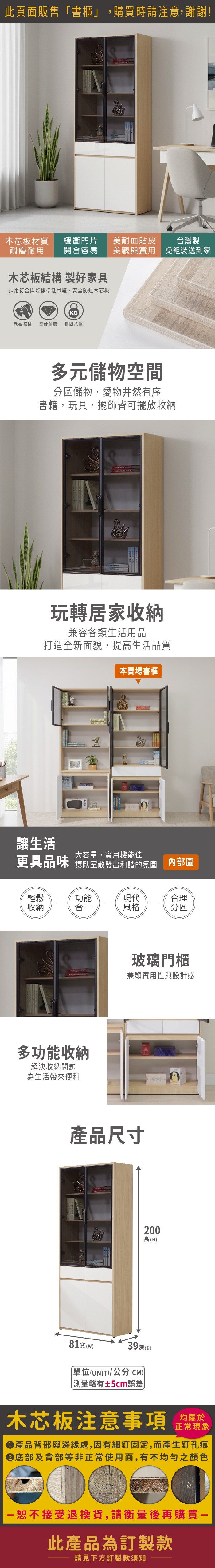 直人木業-DORIS現代風下抽玻璃高被櫥書櫃80公分