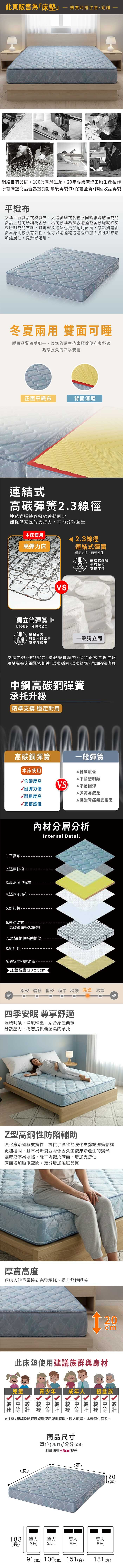 【本木】D06 抗菌連結式彈簧床墊-單人3尺