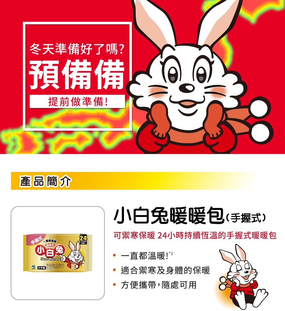 日本【小林製藥】小白兔 手握式暖暖包24hr(10入)/30入|紅誠集品