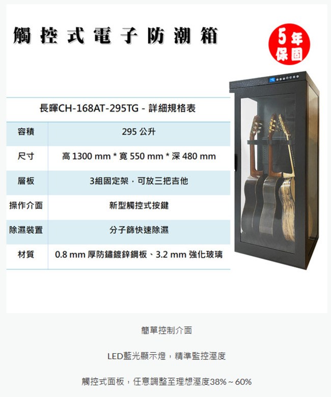 長暉 215公升 CH-168AT-215TG (裸透感) 吉他電子防潮箱 觸控式工業級除溼