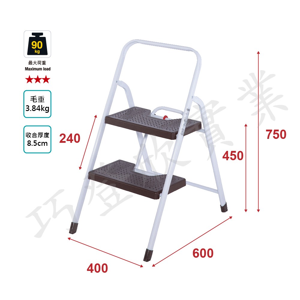 家用止滑三階踏板鐵梯-加強穩定版