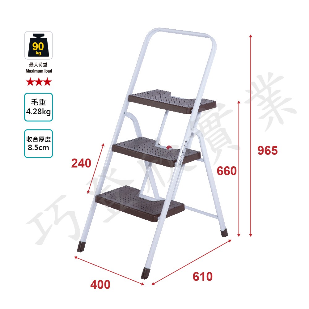 【WINWIN】三階D型加大防滑家用鋁梯奶茶色