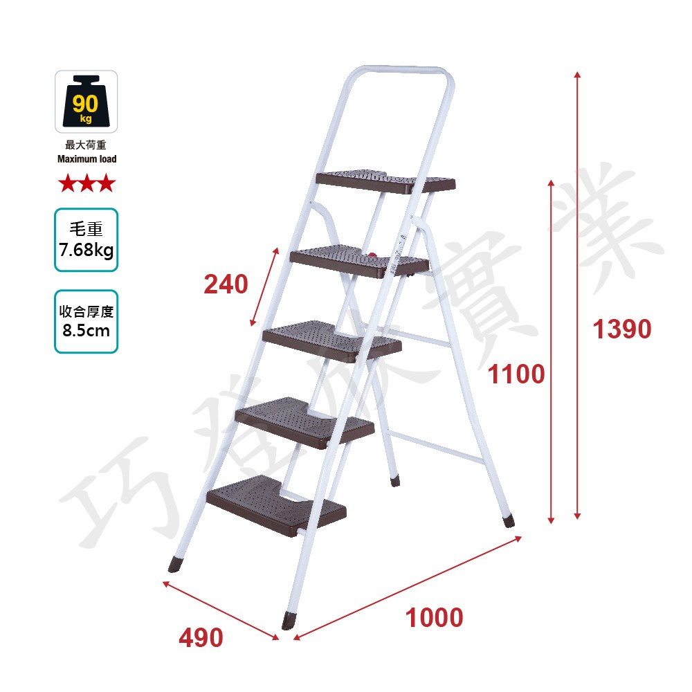 TRENY 鐵製加寬五階踏梯_廠商直送