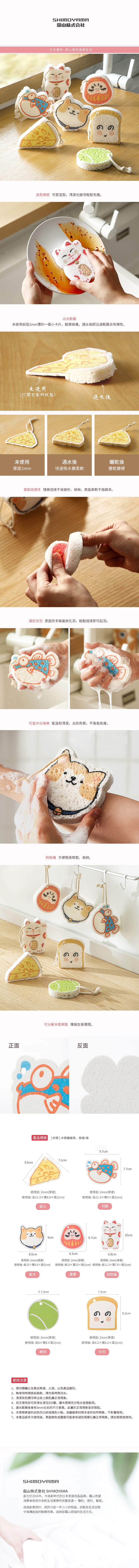 點我下載【日本霜山】可愛造型木漿棉去汙清潔海綿刷-3入-多款可選-達摩