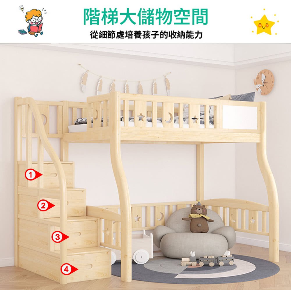 - 功能多樣:上鋪是睡眠空間,下鋪作為孩子的遊戲區、閱讀區、學習區,也可以擺放書桌、衣櫃等,讓孩子能有更舒適的空間。