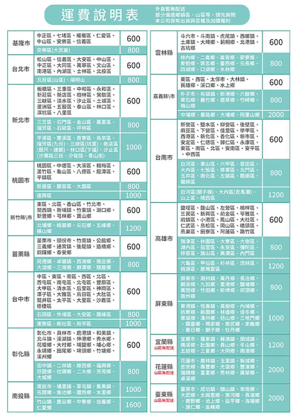 部分區域則無法使用配送,請參考下方說明圖。