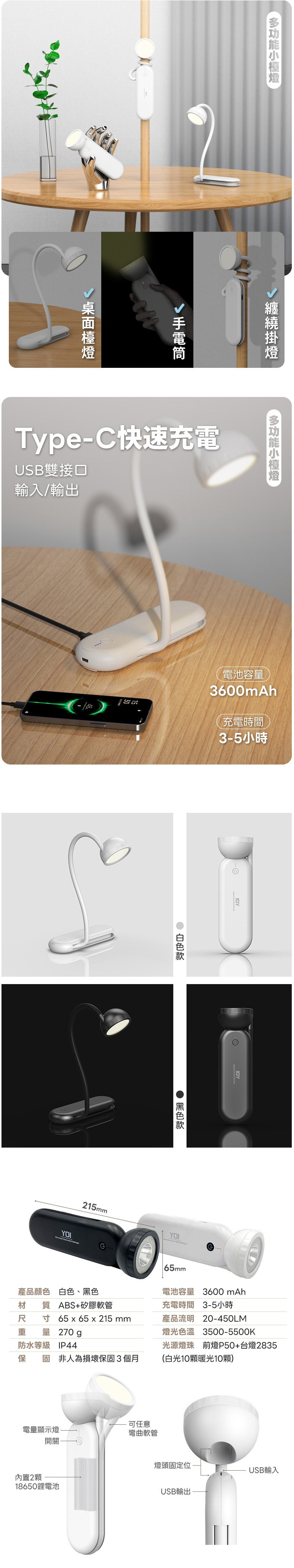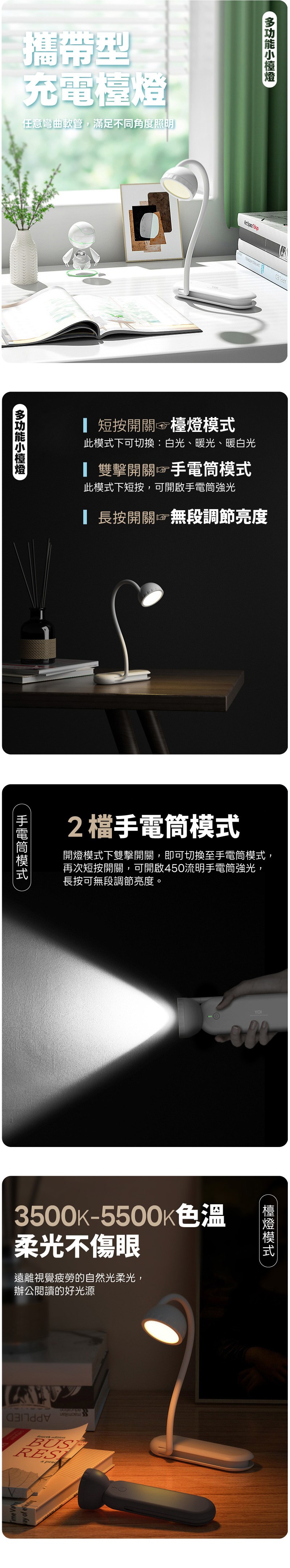 攜帶型充電檯燈-2色黑色 BO1M-B
