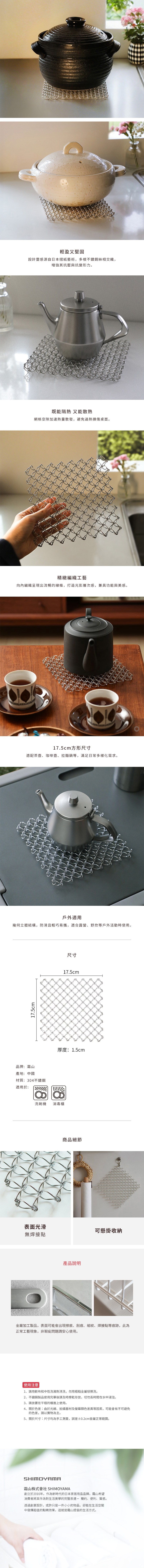 【日本霜山】時尚編織風304不鏽鋼方形隔熱墊/鍋墊
