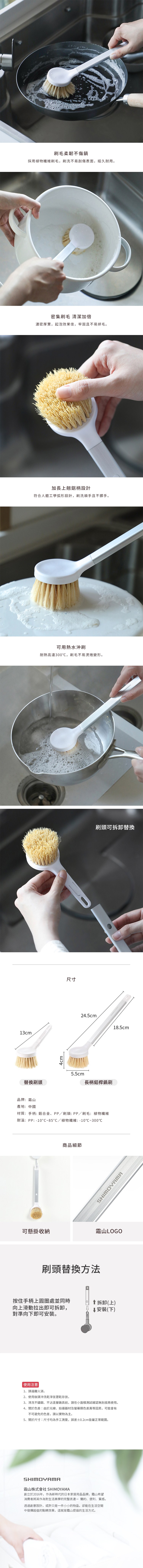 【日本霜山】長柄鋁桿鍋刷/清潔刷(附替換刷頭3入)