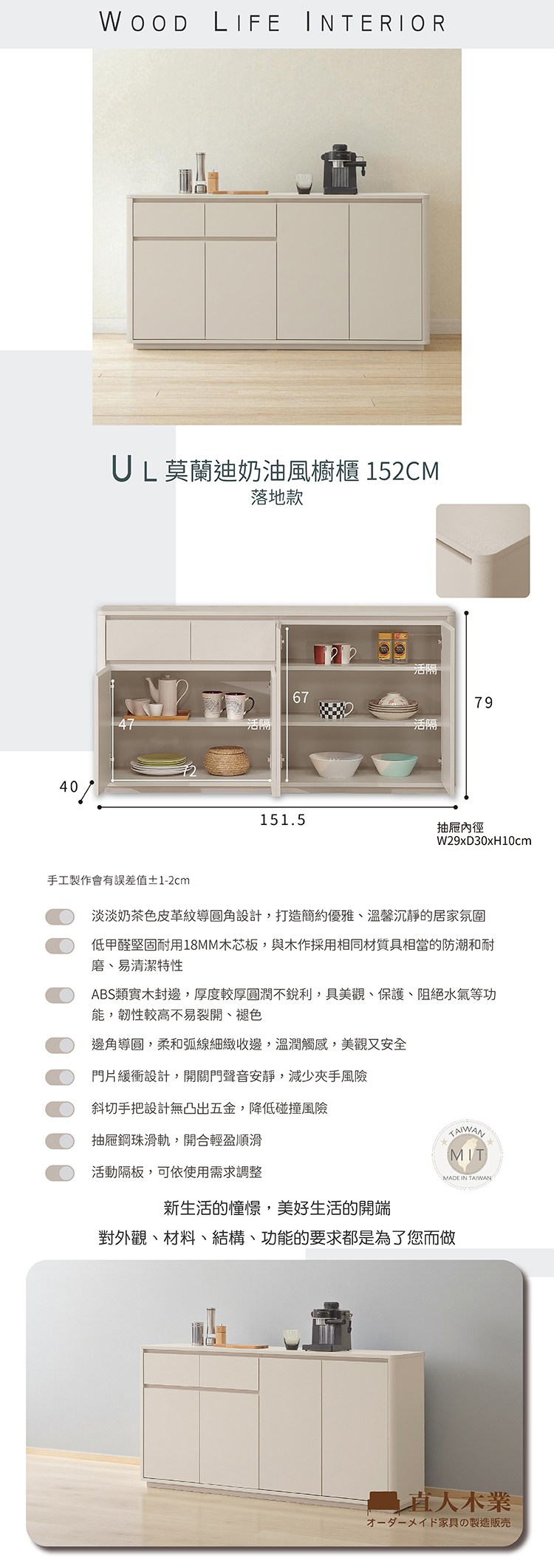 直人木業-UL莫蘭迪奶油風櫥櫃152公分