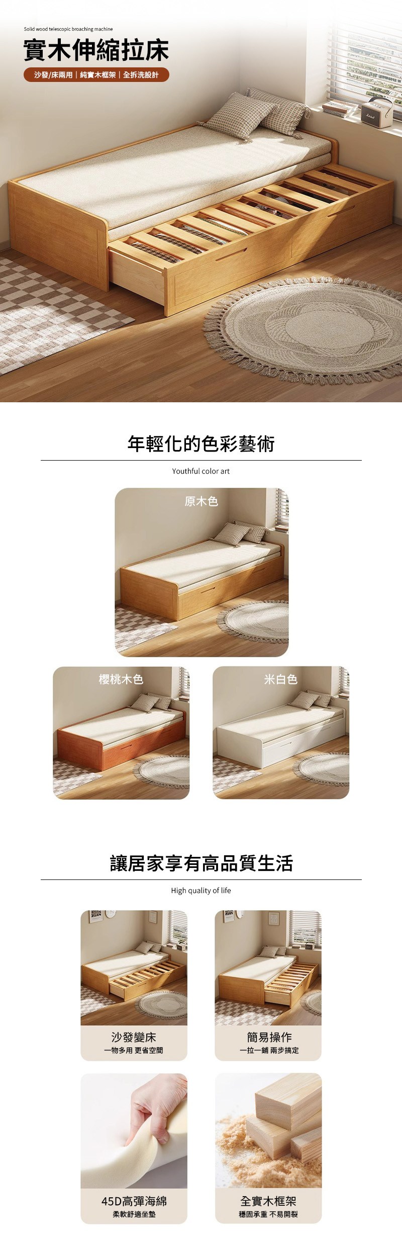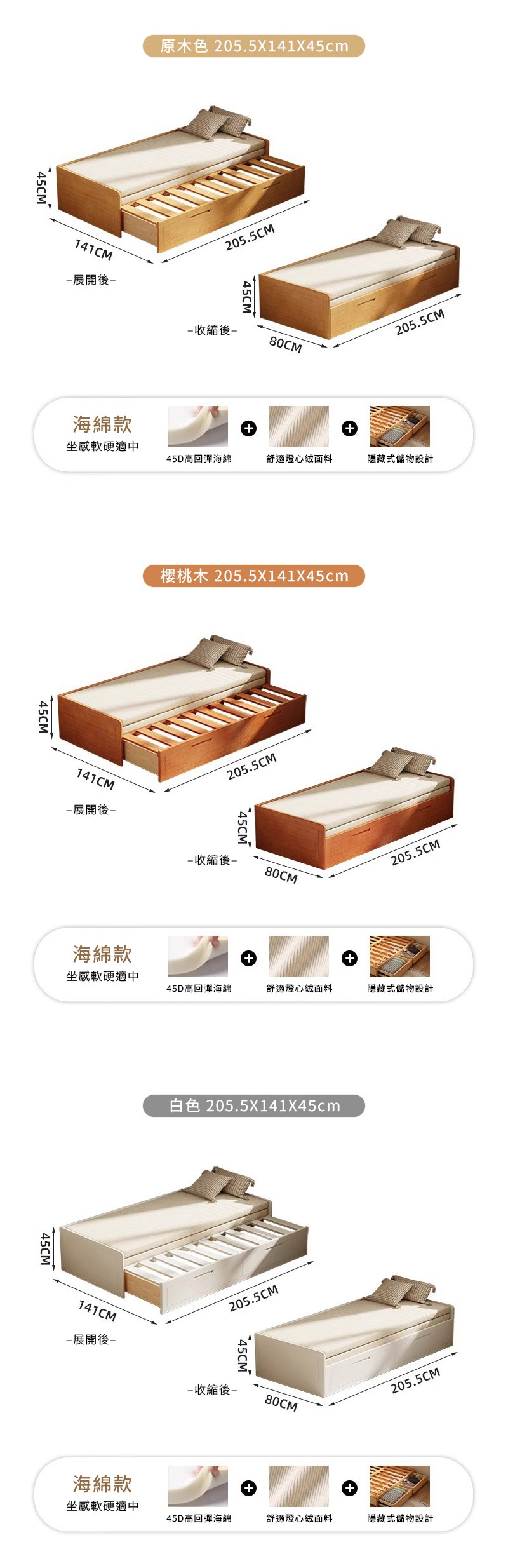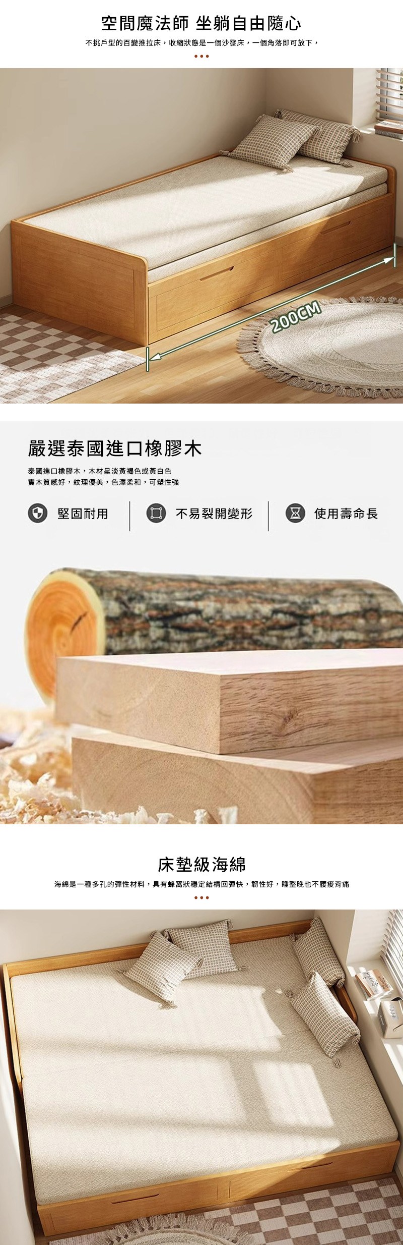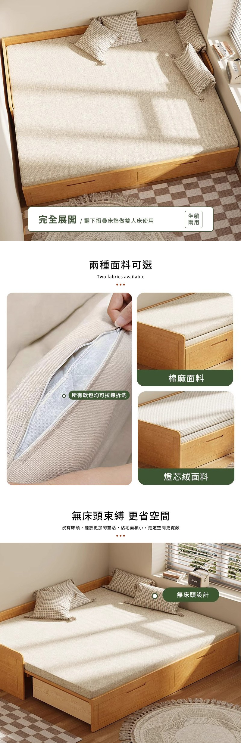 點我下載【HappyLife】實木伸縮拉床 燈芯絨面料 Y12280白