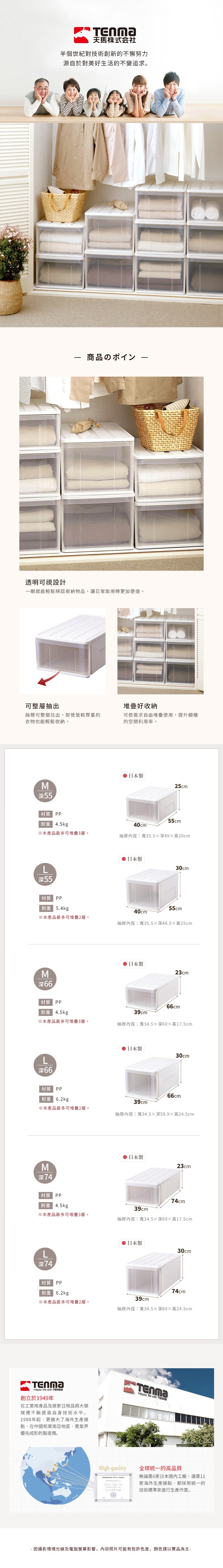 【日本天馬】日本製透窗單層抽屜收納箱(深66cm)-L-3入