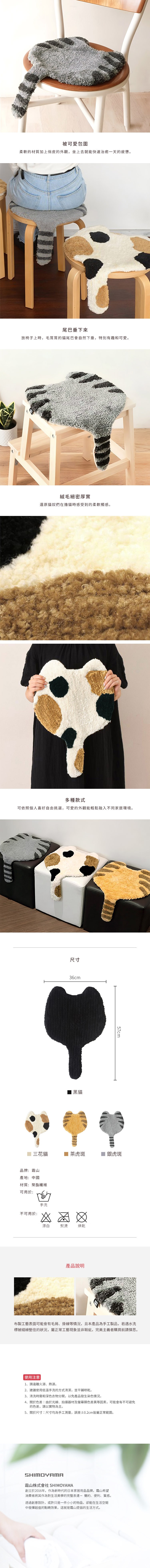 【日本霜山】短絨毛貓尾巴造型椅墊-多款可選-黑貓