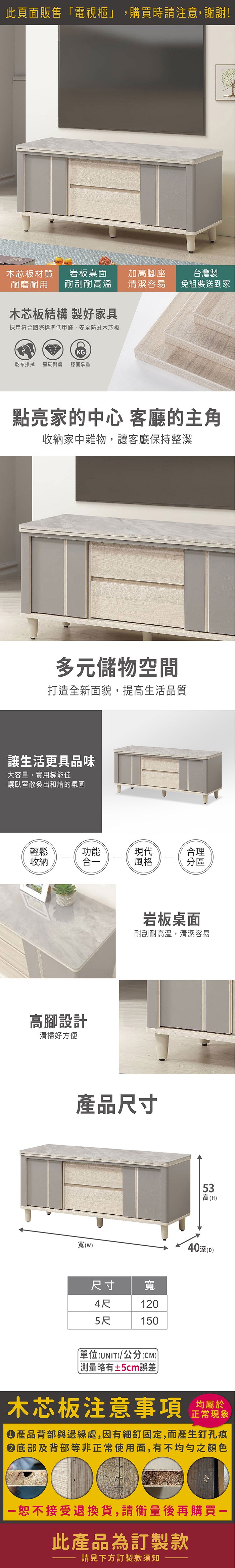 ASSARI-歐力5尺岩板電視櫃(寬150x深40x高53cm)