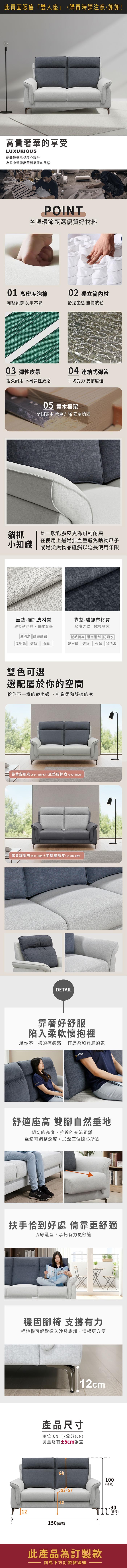 點我下載ASSARI-耐爾雙人座貓抓布/貓抓皮獨立筒沙發淺灰+深灰