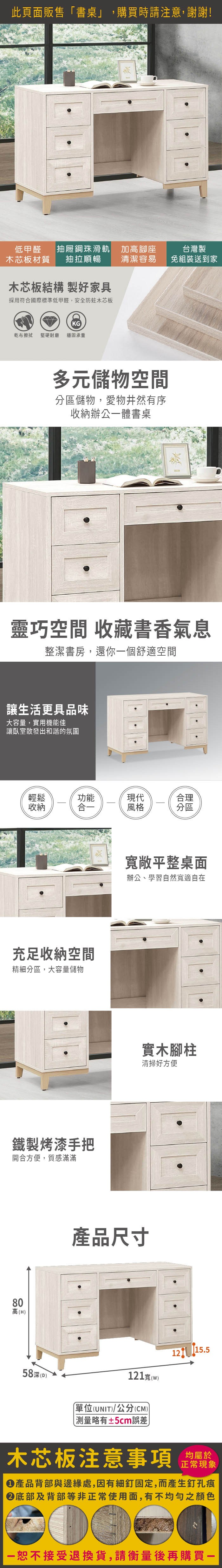 直人木業-COCO田園奶油風書桌121公分(不含椅)