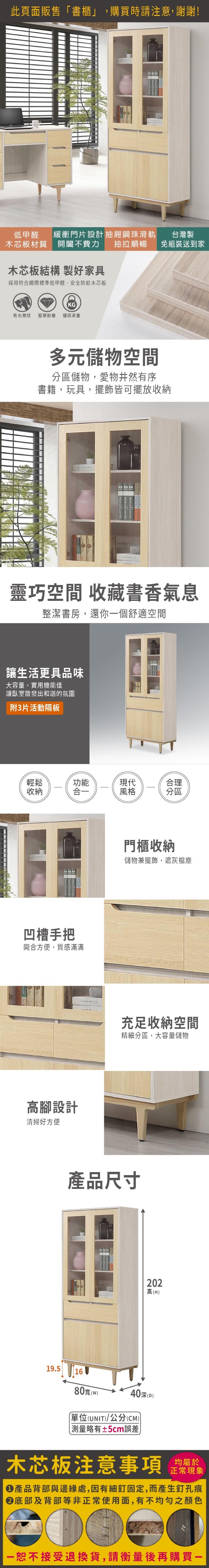 文創集 艾蘿2.7尺四門二抽書櫃-80x40x195cm免組