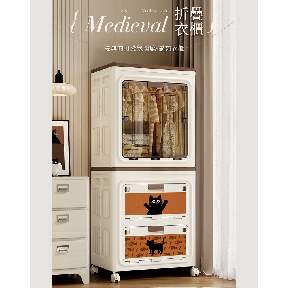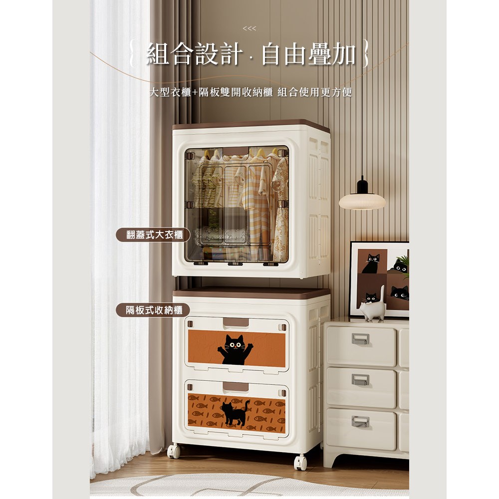 AOTTO 56面寬大容量附輪貓咪收納櫃(收納箱 收納櫃 衣櫃 置物櫃)貓貓